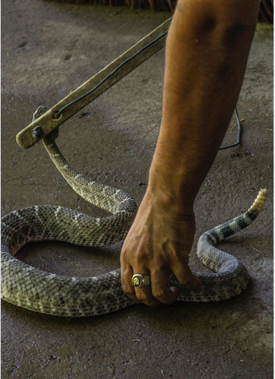 Sotol artesanal producido en la población de Coyame del Sotol, Chihuahua, México a partir de la variedad Dasylirion leiophyllum el cual es añejado durante 90 días con veneno de la serpiente de cascabel en barricas neutras de Whiskey de 30 años de promedio.